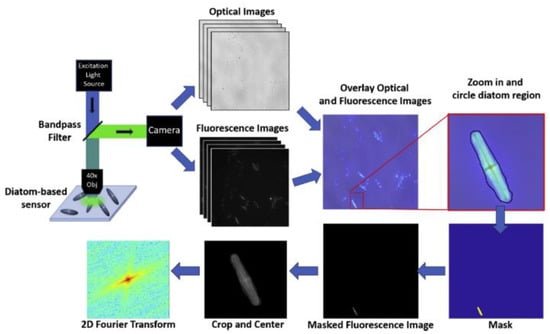 Schematic of quantification of the signal from imaged diatom frustules. Reprinted with permission from [52]. Copyright 2019 Elsevier.