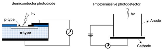 Principle of operation of the semiconductor-based photodetector and photo-emissive photodetector.