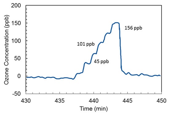 - Aoyagi, Y.; Takeuchi, M.; Yoshida, K.; Kurouchi, M.; Araki, T. High-Sensitivity Ozone Sensing Using 280 nm Deep Ultraviolet Light-Emitting Diode for Detection of Natural Hazard Ozone. J. Environ. Prot. 2012, 3, 695–699. [Google Scholar] [CrossRef]