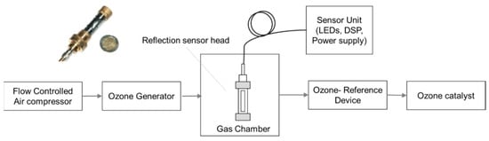 - Degner, M.; Damaschke, N.; Ewald, H.; O’Keeffe, S.; Lewis, E. UV LED-based fiber coupled optical sensor for detection of ozone in the ppm and ppb range. In Proceedings of the SENSORS (IEEE), Christchurch, New Zealand, 25–28 October 2009; pp. 95–99. [Google Scholar]