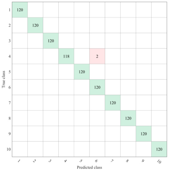 Confusion matrix of 5-fold cross-validation accuracy. 1: NanNong 1606. 2: ShangDou 161. 3: ShangDou 1201. 4: ShangDou 1310. 5: YuDou 18. 6: YuDou 22. 7: YuDou 25. 8: Zheng 196. 9: Zheng 3074. 10: Zheng 9525.
