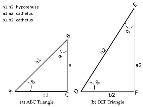 The concept of similarity of the triangles as demonstrated in our previous work [13], states that if two triangles share congruent angles, they are similar, as shown in Figure 1. Hence, the ratios of the corresponding sides of any two triangles are equivalent, no matter the hypotenuse length.