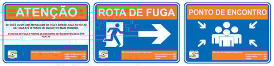 Emergency signposts warning the population about escape routes and meeting points [12].