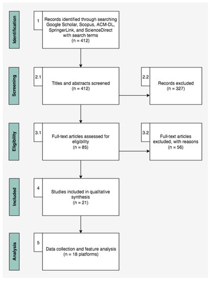 - Jalali, S.; Wohlin, C. Systematic literature studies: Database searches vs. backward snowballing. In Proceedings of the 2012 International Symposium on Empirical Software Engineering and Measurement, Lund, Sweden, 4–11 May 2012; pp. 29–38. [Google Scholar]
