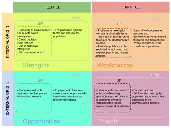 Emergency management in urban environments is marked by the complexity in the decision-making processes that require a dense set of relationships between multiple stakeholders [1,2]. Among a wide range of possible urban disasters, which can affect millions of people in the closer cities, this paper explores the dam rupture example to elucidate how crowd workers can be leveraged as human sensors and distributed intelligent systems able to work on complex problems. The term crowdsourcing was originally presented as a web-based business model, where solving a problem is made possible through the voluntary collaboration of a crowd of digital workers [3]. As pointed out by Correia et al. [4], different forms of digital participation and public engagement can be established in large-scale projects that harness the crowd workforce [5]. Accordingly, crowdsourcing approaches have been supported by a range of technology-mediated platforms that rely on the wisdom of crowds to generate innovative solutions in urban planning processes. In this perspective, as long as crowdsourcing platforms are designed to motivate public participation, a crowdsourcing approach could offer numerous advantages compared to traditional face-to-face meeting models [6].