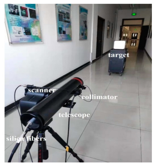 The FWHSL primary distance measurement value based on the time-of-flight method includes two parts: (1) the distance from the telescope receiver to the reference target; and (2) the fixed light path length of the instrument (involving OF2, the telescope, and the spectrograph). The latter cannot be directly measured by the reference laser rangefinder.