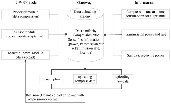When the UWSNs node needs to upload the collected data to the gateway, the data upload decision-making mechanism is introduced into the gateway system, and the gateway executes the data upload decision-making mechanism. The architecture is shown in Figure 3.