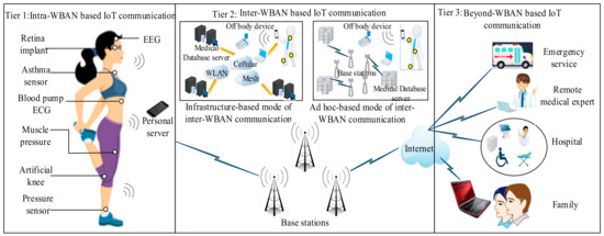 - Alam, M.M.; Malik, H.; Khan, M.I.; Pardy, T.; Kuusik, A.; Le Moullec, Y.; Seebeck, T.J. A survey on roles of communication technologies in IoT-based personalized healthcare applications. IEEE Access 2018, 6, 36611–36631. [Google Scholar] [CrossRef]