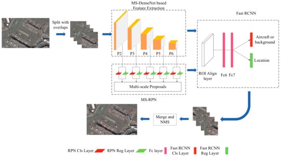 The overall framework of our method is shown in Figure 4. The framework mainly consists of three components: MS-DenseNet-based feature extraction, MS-RPN for generating region proposals, and Fast-RCNN for object recognition and location regression.