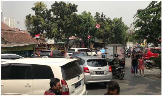 An example of urban swarming transportation” (UST) condition (pictures taken by authors on 24 August 2019, in Jl. Tanjung Duren Raya, West Jakarta, Indonesia).