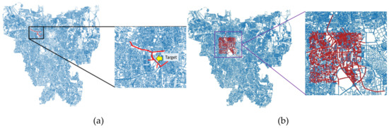 As previously mentioned, there are four prediction tasks in this experiment. In general, each task can be divided into the following two groups according to their prediction area: (1) predictions on the selected 61 road segments and (2) prediction on 5 × 5 km square area. The two groups have a different number of total observations , i.e., 34,944 observations in group 1, and 105,120 observations in group 2.