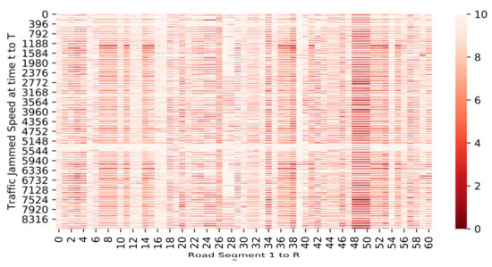 The input of the network is considered as the images T × R, R is the total road segment, and T is time horizon representing the number of 5 min intervals, and t represents every five min traffic jam speed.