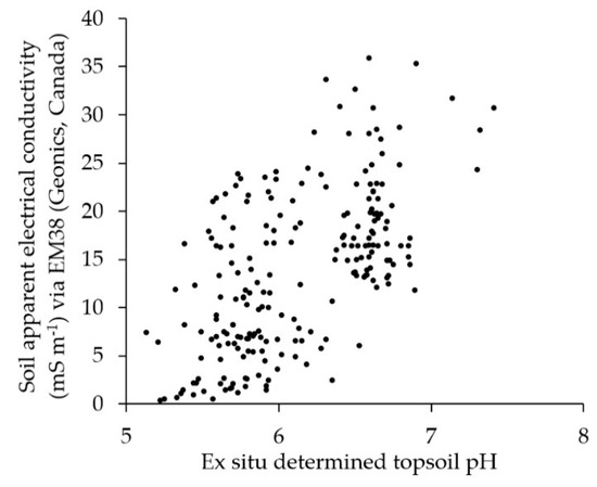 - Sanches, G.M.; Magalhães, P.S.G.; Remacre, A.Z.; Franco, H.C.J. Potential of apparent soil electrical conductivity to describe the soil pH and improve lime application in a clayey soil. Soil Tillage Res. 2018, 175, 217–225. [Google Scholar] [CrossRef]