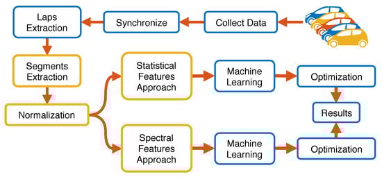 The first step is to collect the data from each vehicle. As described in the Section 3, the same driver was used for all the recordings. The driving was performed in different environmental conditions (e.g., sunny days, rainy days) always on the same loop for 20 times. The data were recorded from the Xsens IMU with a sample rate of 2000 Hz, which is much higher than the sample rate available in commercial smartphones. For this reason, the sample rate was decimated to a lower sample rate as described in the Section 5. The car was driven at different speeds in the EL because of the varying traffic conditions.