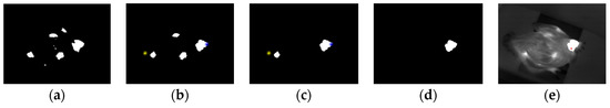 Taking the alternative head regions in Figure 6c as an example, head region was located by using Case 2, as shown in Figure 6d. The relationship between the extracted head region and the original gray-scale thermal image is shown in Figure 6e. Examples of the head region located by using case 1 and case 3 are shown in Figure 7b,e, respectively.