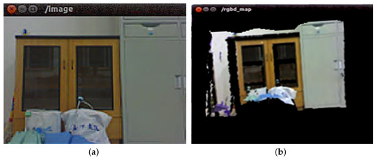 Image display. (a) Image displayed for key_frame topic. (b) Image displayed for rgbd_map topic.