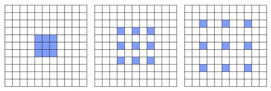 Input pixels using a 3 × 3 Atrous Convolutios with different dilation rates of 1, 2, and 3, respectively.