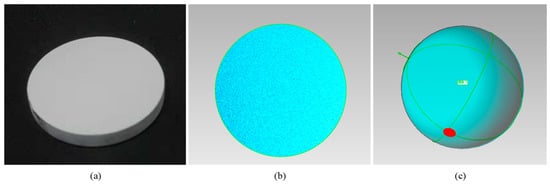 (a) The concave mirror after coating process; (b) Reconstructed 3D model of the concave surface by a structured light 3D scanner; (c) Sphere fitting of the concave surface.