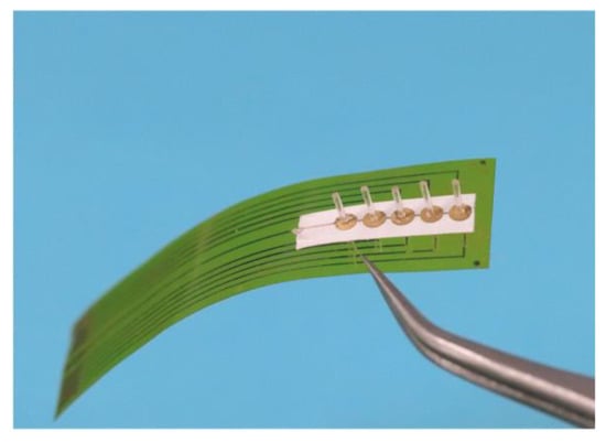Inspired by the LLS of fish, various artificial flow velocity sensors have been developed [16]. Flow velocity sensors with different sensing mechanisms, such as piezoresistive, capacitive, optical, hot-wire, and piezoelectric properties, have been proposed [17,18,19,20,21,22,23,24,25,26]. Piezoelectric polymers are flexible and biocompatible compared with inorganic materials, and advantageous as they can be used to develop fully flexible sensors for curved surfaces [27]. Bora et al. developed a flow sensor with an electrospun polyvinylidene fluoride (PVDF) nanofiber mat. However, the flow sensor showed a poor detection limit of 5 mm/s and no directional sensing ability [28].