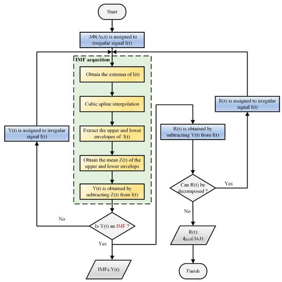 The phase signal ΔФ(Δs,t) decomposition process with the empirical mode decomposition (EMD) algorithm.