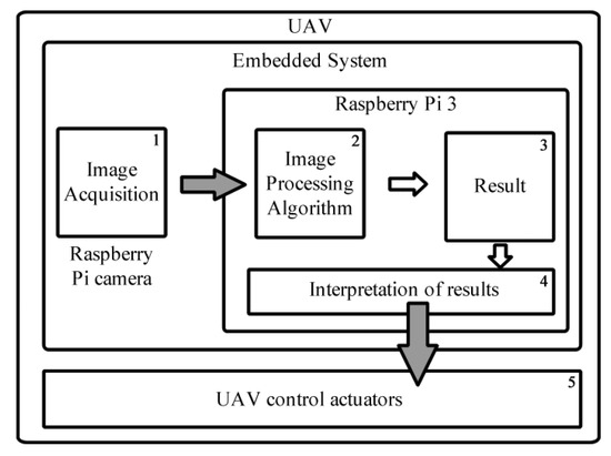 The proposed system consists of a UAV actuator control software system based on data provided by an image processing algorithm. This software runs on embedded hardware integrated into the UAV platform, as shown in