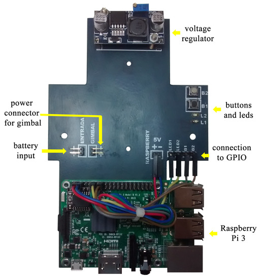 It can be seen that the system uses an average of A of electric current without executing the proposed algorithm, and A when the algorithm is executed. On the basis of this information, the average current used to execute the proposed algorithm is A. The average current of the whole embedded system ( A) is less than or equivalent to the electrical current used by the fly control unit (FCU). Considering that the FCU has one of the lowest energy consumption rates of a UAV system, it is possible to state that the proposed embedded system has low consumption and can be used in small UAVs equipped with small batteries.