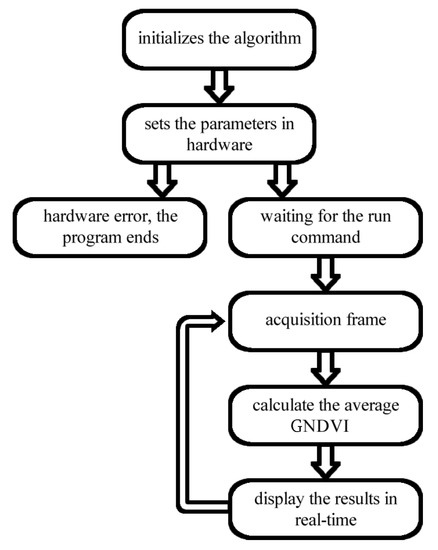 4), it is possible to obtain the GNDVI value for each pixel. The average GNDVI for each processed frame can be obtained by (