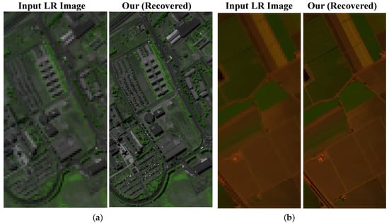 The input HR-HS image and the recovered HR-HS images on the Salinase and PaviaU images. (a) Salinas image. (b) PaviaU image.