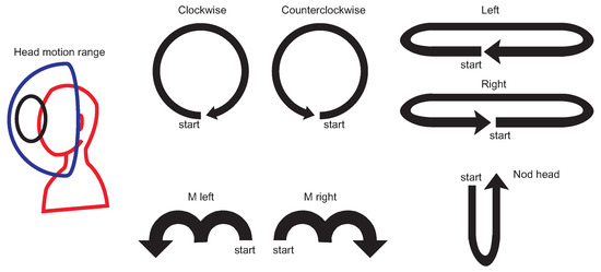 A very important factor that was not taken into account in previous research on head motion analysis is supporting a user who performs the head motion with some visual feedback: an actual trajectory of his/her head. Such type of feedback (for example drawing points that indicate actual head direction in virtual or augmented reality technology) might highly increase the awareness of motion trajectories that are drawn by a user’s head. The dataset we used in this research was gathered using a VRH with systems that draw such a trajectory. This is why we used whole VRH rather than only an IMU sensor.