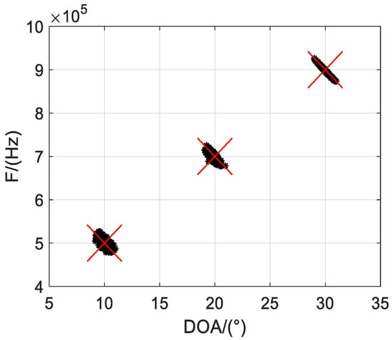 Before the first calculation of TLAS, and must be initialized. Usually, and are randomly initialized or initialized with ESPRIT or PM. Firstly, Equation (21) is computed to estimate . Then, Equation (22) is calculated to update (based on the initialized and previously estimated ). Thereafter, Equation (23) is computed to update . Finally, iterations in Equations (21)–(23) will repeat until convergence. In this paper, we adopted the COMFAC algorithm for PARAFAC decomposition [], which can be quickly converge after only a few iteration.