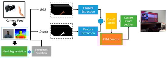 - Lee, S.-H.; Sohn, M.-K.; Kim, D.-J.; Kim, B.; Kim, H. Smart TV interaction system using face and hand gesture recognition. In Proceedings of the 2013 IEEE International Conference on Consumer Electronics (ICCE), Las Vegas, NV, USA, 11–14 January 2013; pp. 173–174. [Google Scholar]