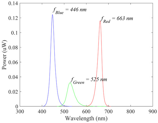 | Peak wavelength (nm) | 660.8 ± 1.0 | 528.6 ± 24.5 | 448.0 ± 0.4 |