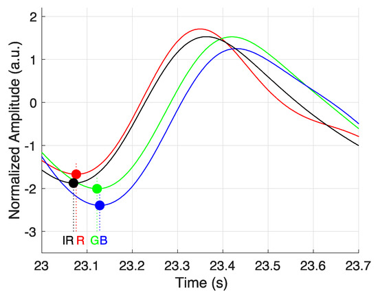 - Liu, J.; Zhang, Y.-T.; Ding, X.-R.; Dai, W.-X.; Zhao, N. A preliminary study on multi-wavelength PPG based pulse transit time detection for cuffless blood pressure measurement. In Proceedings of the 2016 38th Annual International Conference of the IEEE Engineering in Medicine and Biology Society (EMBC), Orlando, FL, USA, 16–20 August 2016; pp. 615–618. [Google Scholar]