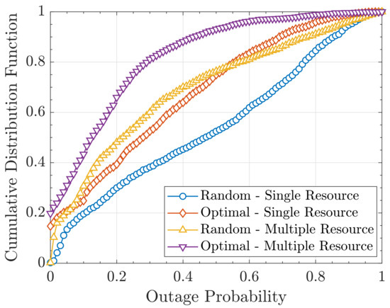 On the other hand, to get richer insights, in Figure 10, we show the cdf of the outage probability: