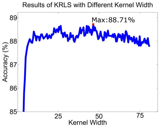 The results of KRLS with different kernel width. The maximum accuracy is  with the kernel width is 46.