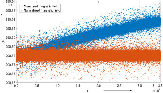 - for the correction results, in Section 4.3 the experimental data discussed in the two previous subsections is used in Equation (23) to calculate the correction interval with the target uncertainty of 1 T.