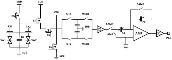 - Kawai, N.; Kawahito, S. Noise analysis of high-gain, low-noise column readout circuits for CMOS image sensors. IEEE Trans. Electron Devices 2004, 51, 185–194. [Google Scholar] [CrossRef]