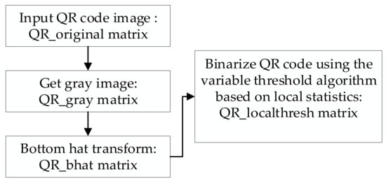 - Yang, L.; Feng, Q. The Improvement of Bernsen Binarization Algorithm for QR Code Image. Proceeding of the 2018 5th IEEE International Conference on Cloud Computing and Intelligence Systems (CCIS), Nanjing, China, 23–25 November 2018; pp. 931–934. [Google Scholar]