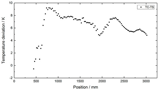 In order to further characterize the setup used and the three-point TC array, the three-point TC array data were corrected for the temperature differences between tube 1 and tube 2. Figure 9 shows the differences of all corrected three-point TC data taken during the two-year campaign and the single-point TC data from 24 April 2019. These differences are in the range of +3 K to −7 K and thus slightly larger than those of the RFBG-based data.