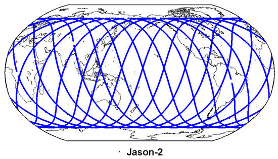 The Jason-2 satellite operates at an orbital altitude of 1336 km, with an inclination of 66°. As shown in Figure 1, the footprints of Jason-2 cover most ocean areas within 66° S~66° N. Therefore, the Jason-2 altimeter TEC could be effectively used to evaluate IGS GIM products over ocean areas that lack ground-based ionosphere measurements [28].