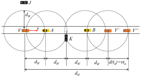 where d is the headway distance to the front vehicle U, is the speed of U, v is the speed of the host vehicle V, a is the maximum deceleration.