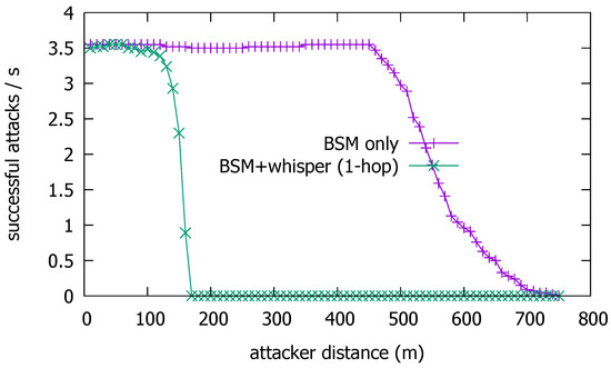 Successful attacks with basic safety message (BSM) only and with BSM + whisper.