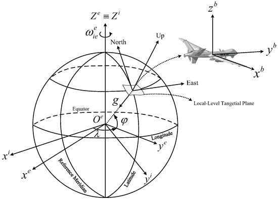 - Yan, G.; Weng, J.; Bai, L.; Qin, Y. Initial in-movement alignment and position determination based on inertial reference frame. Syst. Eng. Electron. 2011, 33, 618–621. [Google Scholar]