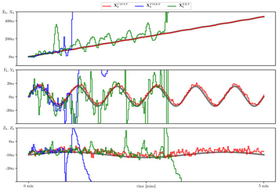 - Bosov, A.; Miller, G. Conditionally Minimax Nonlinear Filter and Unscented Kalman Filter: Empirical Analysis and Comparison. Autom. Remote Control 2019, 80, 1230–1251. [Google Scholar] [CrossRef]