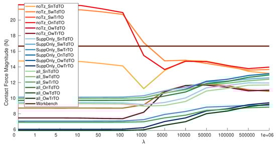 Average magnitude of the contact force using also estimated Offset.