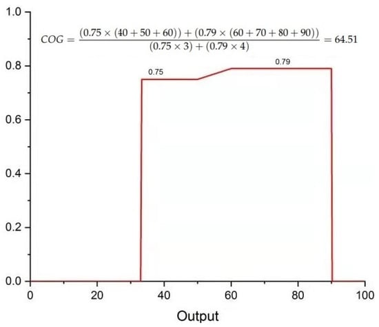 After completion of the Mamdani rule evaluation process, the defuzzification process is performed. In the defuzzification process, the attained aggregated fuzzy set is converted to a number through the COG technique as demonstrated in Figure 6.