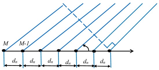 On the other hand, when is measured from the line perpendicular to the antenna array, Equation (18), which is shown below, is utilized: