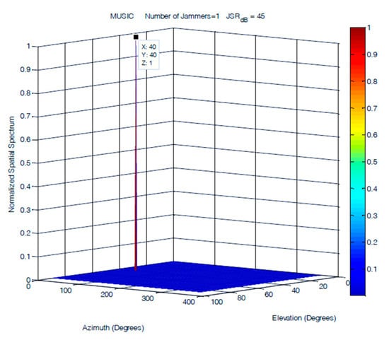 DOA estimation of one jammer at JSR = 45 dB.