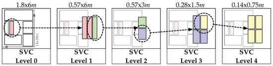 On the highest level, the data from the industrial dataset are split into six regions (see Figure 13). The regions are selected such that they imply real-world relevance (i.e., a typical transition between storage shelves), but also include enough and equally distributed data points for the machine learning algorithms. The red box then shows the subregion that is further partitioned in Level 1.