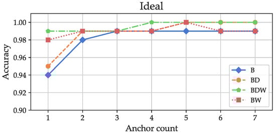 Classification accuracies for different anchor counts with the “Ideal” dataset for different combinations of features.